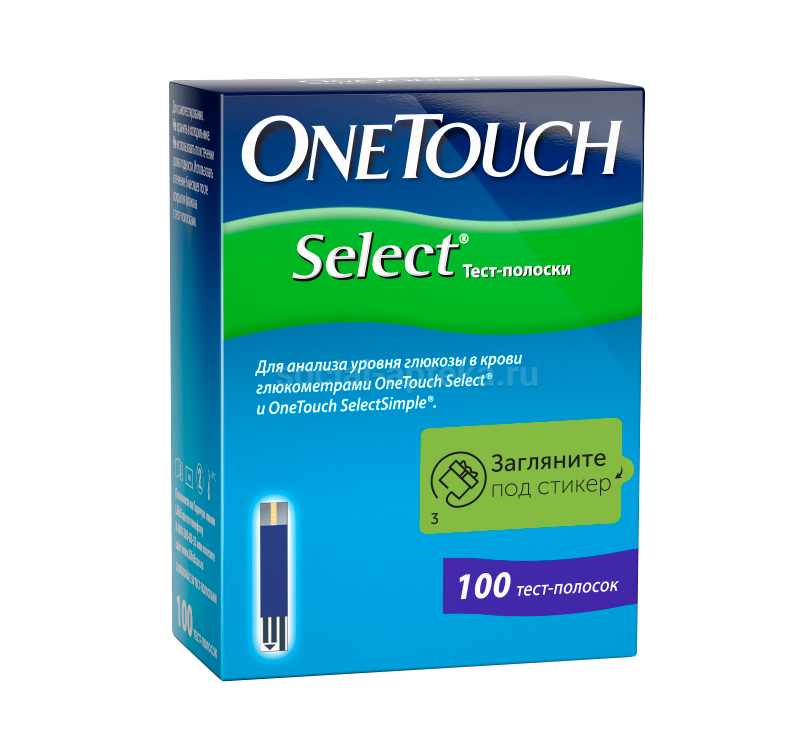 Храните упаковку с тест-полосками в сухом, прохладном месте при температуре не выше 30°C. Не допускайте попадания на него прямых солнечных лучей и тепла. Не храните в холодильнике. Храните тест-полоски исключительно в оригинальном футляре, не перекладывайте их в другой футляр или контейнер. Не открывайте футляр с полосками до тех пор, пока вы не готовы их использовать. Вынув из флакона одну тест-полоску OneTouch Select, немедленно плотно закройте крышку. Не используйте тест-полоски из поврежденного или открытого футляра. Как только вы открыли упаковку, пометьте на этикетке срок годности (три месяца после открытия упаковки). Не используйте тест-полоски после истечения первой из двух указанных на упаковке дат - срока годности или срока рекомендуемого использования. При первом вскрытии флакона напишите на его этикетке дату, после которой тест-полосками нельзя пользоваться. Новый флакон с тест-полосками OneTouch Select можно использовать в течение трех месяцев после первого вскрытия. Не допускайте попадания грязи или крови на верхний белый край тест-полоски. Вы можете прикасаться к любому месту тест-полоски чистыми сухими руками. Не сгибайте тест-полоски, не разрезайте их на части и не проделывайте с ними никаких других манипуляций. Тест-полоски одноразовые. Ни в коем случае не пользуйтесь полосками со следами крови и контрольного раствора. Перед анализом убедитесь в том, что глюкометр и тест-полоски примерно одинаковой температуры. Не допускайте попадания на полоску ничего, кроме контрольного раствора OneTouch Select или крови. После анализа ни в коем случае не вкладывайте использованную полоску обратно в футляр.