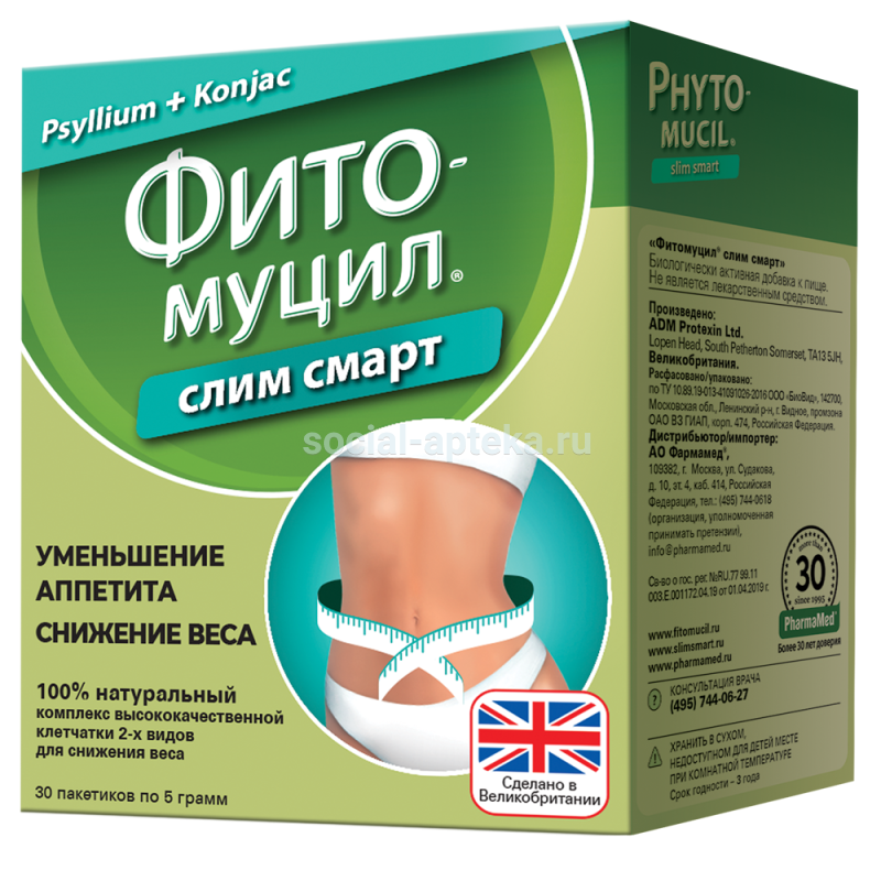Фитомуцил Слим Смарт пак 5г N30 (ФармаМед) наличие в аптеках в Ростове-на-Дону