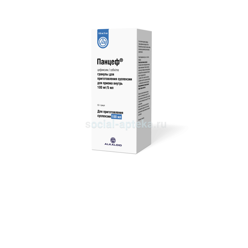 100 мл суспензии содержат активное вещество: цефиксим (в виде цефиксима тригидрата) 2,000 г-2,238 г Вспомогательные вещества: сахароза, камедь ксантановая, натрия бензоат, ароматизатор апельсиновый.