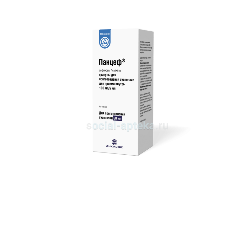 Панцеф - антибактериальное широкого спектра (бактерицидное).ФармакодинамикаЦефиксим представляет собой цефалоспориновый антибиотик III поколения для приема внутрь с выраженной антибактериальной активностью против большинства грамположительных и грамотрицательных микроорганизмов.Механизм действия обусловлен угнетением синтеза клеточной мембраны возбудителя. Устойчив к бета-лактамазам как грамположительных, так и грамотрицательных микроорганизмов.Высокоактивен в отношении Streptococcus pneumoniae, Streptococcus pyogenes, Streptococcus agalactiae, Haemophilus influenzae, Haemophilus parainfluenzae, Moraxella catarrhalis (в т.ч. штаммы, продуцирующие бета-лактамазы), Escherichia coli, Proteus mirabilis, Proteus vulgaris, Neisseria gonorrhoeae, Klebsiella pneumoniae, Klebsiella oxytoca, Pasteurella multocida, Providencia spp., Salmonella spp., Shigella spp., Citrobacter spp. (в т.ч. Citrobacter diversus), Serratia marcescens.Pseudomonas spp., Acinetobacter spp, некоторые штаммы Streptococcus, Enterococcus spp.(метициллиноустойчивые штаммы), Listeria monocytogenes, Bacteroides fragilis, большинство штаммов Staphylococcus, Enterobacter и Clostridium устойчивы к цефиксиму.ФармакокинетикаВсасывание. После приема внутрь всасывание цефиксима составляет 40–50% независимо от приема пищи; однако отмечено, что Cmax в сыворотке крови достигаются быстрее на 0,8 ч при приеме препарата вместе с пищей. При приеме препарата в форме таблеток в дозе 400 мг Cmax в плазме составляет 3,5 мкг/мл. Tmax — 2–6 ч.После приема суспензии Cmax (по сравнению с таблетками) выше на 25–50%. Tmax — 2–6 ч для суспензии 400 мг/5 мл и 2–5 ч для суспензии 200 мг/5 мл. Tmax в плазме крови также составляют 2–6 ч.Распределение. Связывание с белками плазмы составляет 50–60%. Vd составляет 0,6–1,1 л/кг. Высокие концентрации препарата длительно сохраняются в сыворотке крови, желчи, моче.Метаболизм. Нет данных о метаболитах цефиксима.Выведение. Цефиксим выводится в основном почками путем гломерулярной фильтрации в неизмененном виде — 50%, с желчью — 10%.T1/2 у здоровых добровольцев составляет в среднем 3–4 ч, в отдельных случаях — до 9 ч. Продолжительный T1/2 делает возможным однократное дозирование.При нарушении функции почек при Cl креатинина 20–40 мл/мин T1/2 увеличивается и в среднем составляет 6,4 ч, при Cl креатинина 5–20 мл/мин T1/2 — 11,5 ч.