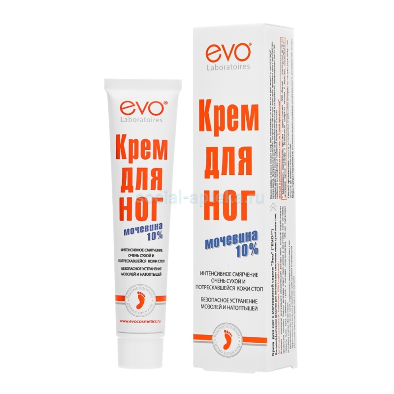 Мочевина (карбамид) - компонент натурального увлажняющего фактора кожи, который вырабатывается организмом человека. Именно мочевина делает кожу мягкой и эластичной, если мочевины в коже слишком мало, она становится сухой и выглядит потрескавшейся. Крем для ног с мочевиной "Эво" содержит 10% мочевины, благодаря чему интенсивно смягчает сухую, огрубевшую и растрескавшуюся кожу стоп, улучшает обменные процессы, эффективно и безопасно устраняет сухие мозоли и натоптыши. Дополнительные активные компоненты - масло оливы и кокоса питают кожу, восстанавливают ее мягкость и эластичность, препятствуют потере влаги. Натуральный комплекс экстрактов чистотела, коры дуба, шалфея и хвои способствует устранению потертостей и раздражений, предотвращает развитие грибковой микрофлоры и неприятного запаха.