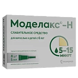 Моделакс®-Н – комбинированный препарат, оказывающий слабительное действие. Эффект наступает через 5 – 15 минут. В состав препарата входят натрия цитрат (пептизатор, который вытесняет связанную воду, содержащуюся в каловых массах), натрия лаурилсульфоацетат (разжижает содержимое кишечника) и сорбит (усиливает слабительное действие путем стимуляции поступления воды в кишечник). Увеличение количества воды за счет пептизации и разжижения способствует размягчению каловых масс и облегчает опорожнение кишечника.