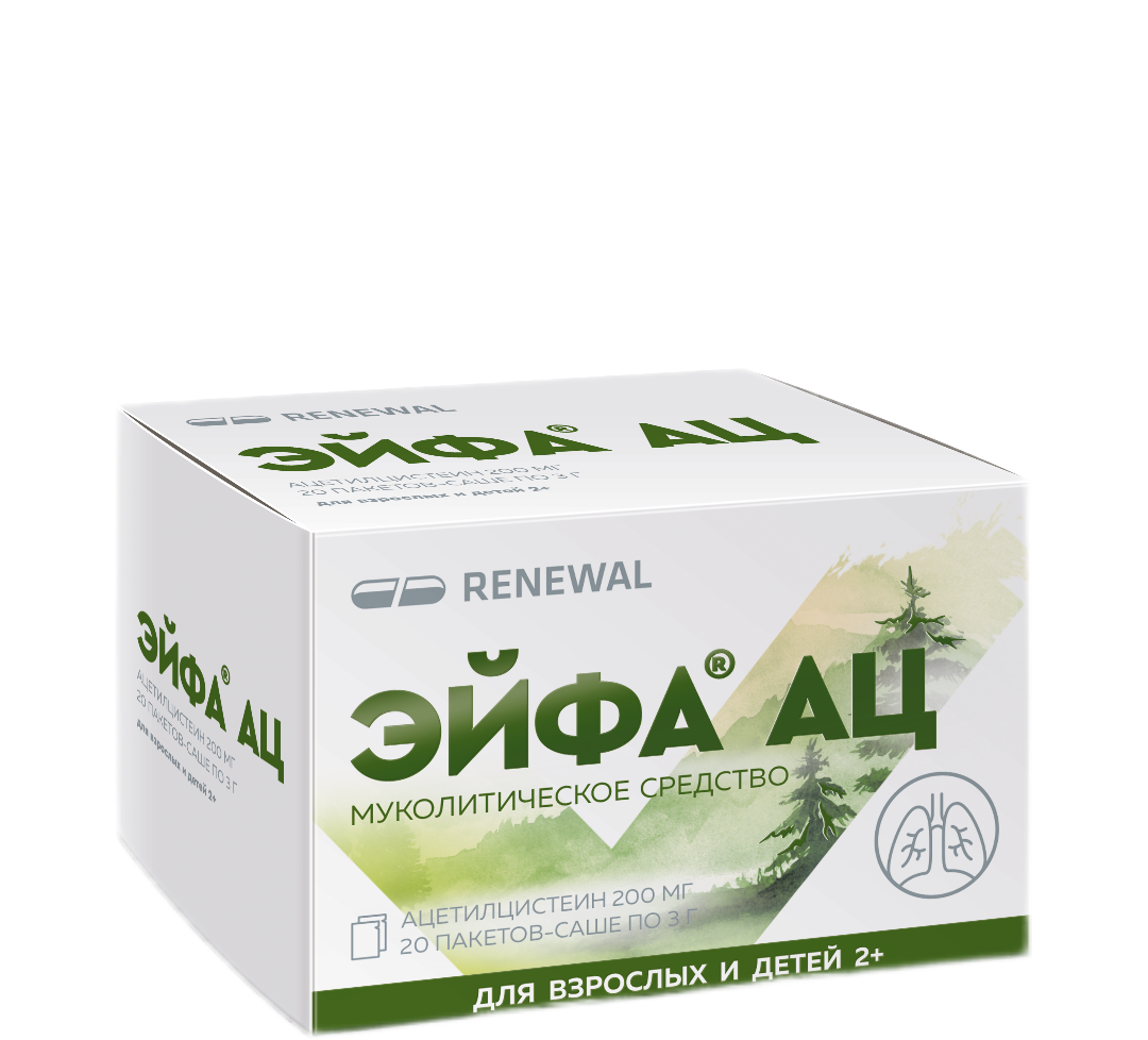 Внутрь, после еды. Гранулы следует растворять в 1 стакане воды комнатной температуры и принимать сразу после растворения. Гранулы для приготовления раствора для приема внутрь, 100 мг. При отсутствии других назначений рекомендуется придерживаться следующих дозировок: Муколитическая терапия. Взрослым и подросткам старше 14 лет рекомендуется принимать по 2 пакета-саше 2-3 раза в день (400-600 мг в день). Детям в возрасте от 6 до 14 лет рекомендуется принимать по 1 пакету-саше 3 раза в день или по 2 пакета-саше 2 раза в день (300-400 мг в день). Детям в возрасте от 2 до 6 лет рекомендуется принимать по 1 пакету-саше 2-3 раза в день (200-300 мг в день). Муковисцидоз. Детям в возрасте старше 6 лет рекомендуется принимать по 2 пакета-саше 3 раза в день (600 мг в день). Детям в возрасте от 2 до 6 лет рекомендуется принимать по 1 пакету-саше 4 раза в день (400 мг в день). Пациентам с массой тела ≥30 кг, в случае необходимости возможно увеличение дозы до 800 мг препарата. Гранулы для приготовления раствора для приема внутрь, 200 мг. При отсутствии других назначений рекомендуется придерживаться следующих дозировок. Муколитическая терапия. Взрослым и подросткам старше 14 лет рекомендуется принимать по 1 пакету-саше 2-3 раза в день (400-600 мг в день). Детям в возрасте от 6 до 14 лет рекомендуется принимать по 1/2 пакета-саше 3 раза в день или по 1 пакету-саше 2 раза в день (300-400 мг в день). Муковисцидоз. Детям в возрасте старше 6 лет рекомендуется принимать по 1 пакету-саше 3 раза в день (600 мг в день). Пациентам с массой тела ≥ 30 кг, в случае необходимости возможно увеличение дозы до 800 мг препарата. Предостережение. В связи с высоким содержанием действующего вещества (200 мг ацетилцистеина в пакете-саше) не следует принимать препарат детям в возрасте до 6 лет. В этом случае рекомендуется использовать препарат Эйфа АЦ в других дозировках с более низким содержанием ацетилцистеина. Гранулы для приготовления раствора для приема внутрь, 600 мг. При отсутствии других назначений рекомендуется придерживаться следующих дозировок: 1 пакет-саше 1 раз в день (600 мг в день). Предостережение. В связи с высоким содержанием действующего вещества (600 мг ацетилцистеина в пакете-саше) не следует принимать препарат детям в возрасте до 14 лет. В этом случае рекомендуется использовать препарат Эйфа АЦ в других дозировках с более низким содержанием ацетилцистеина. Дополнительный прием жидкости усиливает муколитический эффект препарата. При кратковременных простудных заболеваниях длительность приема препарата Эйфа АЦ составляет 5-7 дней. При длительных заболеваниях курс лечения определяется лечащим врачом. При хронических бронхитах и муковисцидозе препарат следует принимать более длительное время для достижения профилактического эффекта при инфекциях.