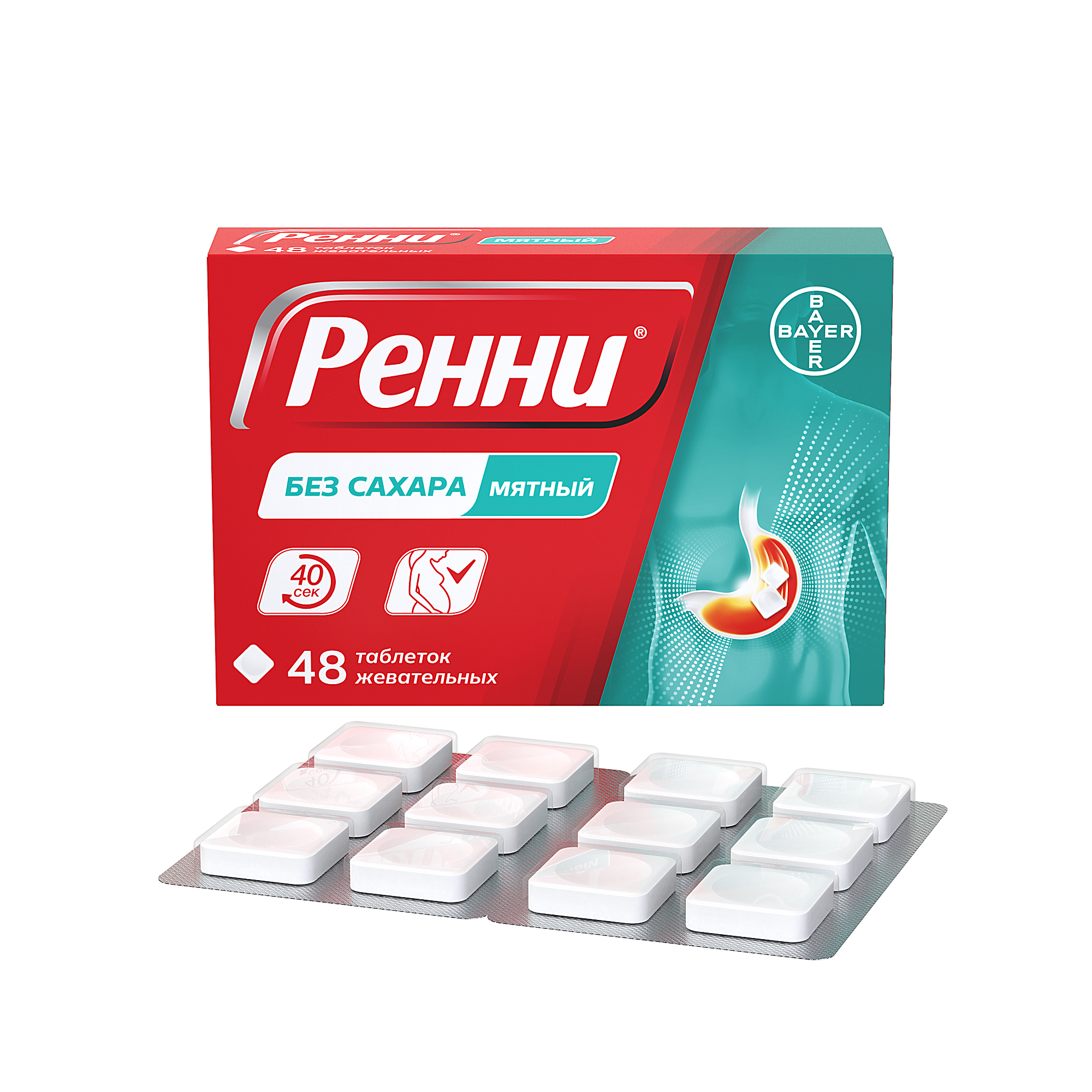 - Форма выпуска: Таблетки жевательные без сахара [мятные] 680 мг + 80 мг