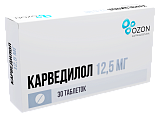 Действующее вещество: карведилол 25 мг;Вспомогательные вещества: лактозы моногидрат; МКЦ ; кросповидон; повидон К30; кремния диоксид коллоидный; магния стеарат